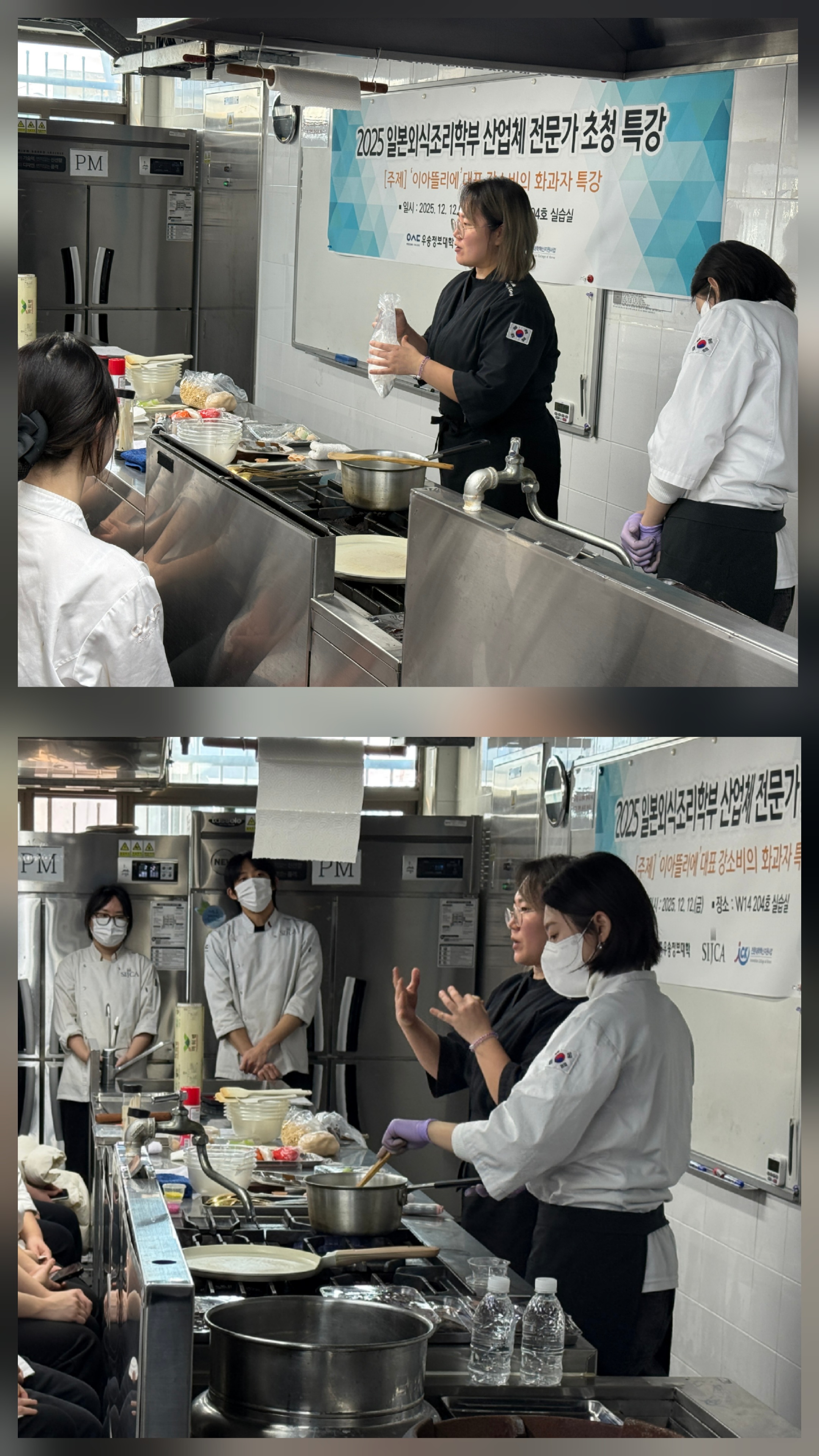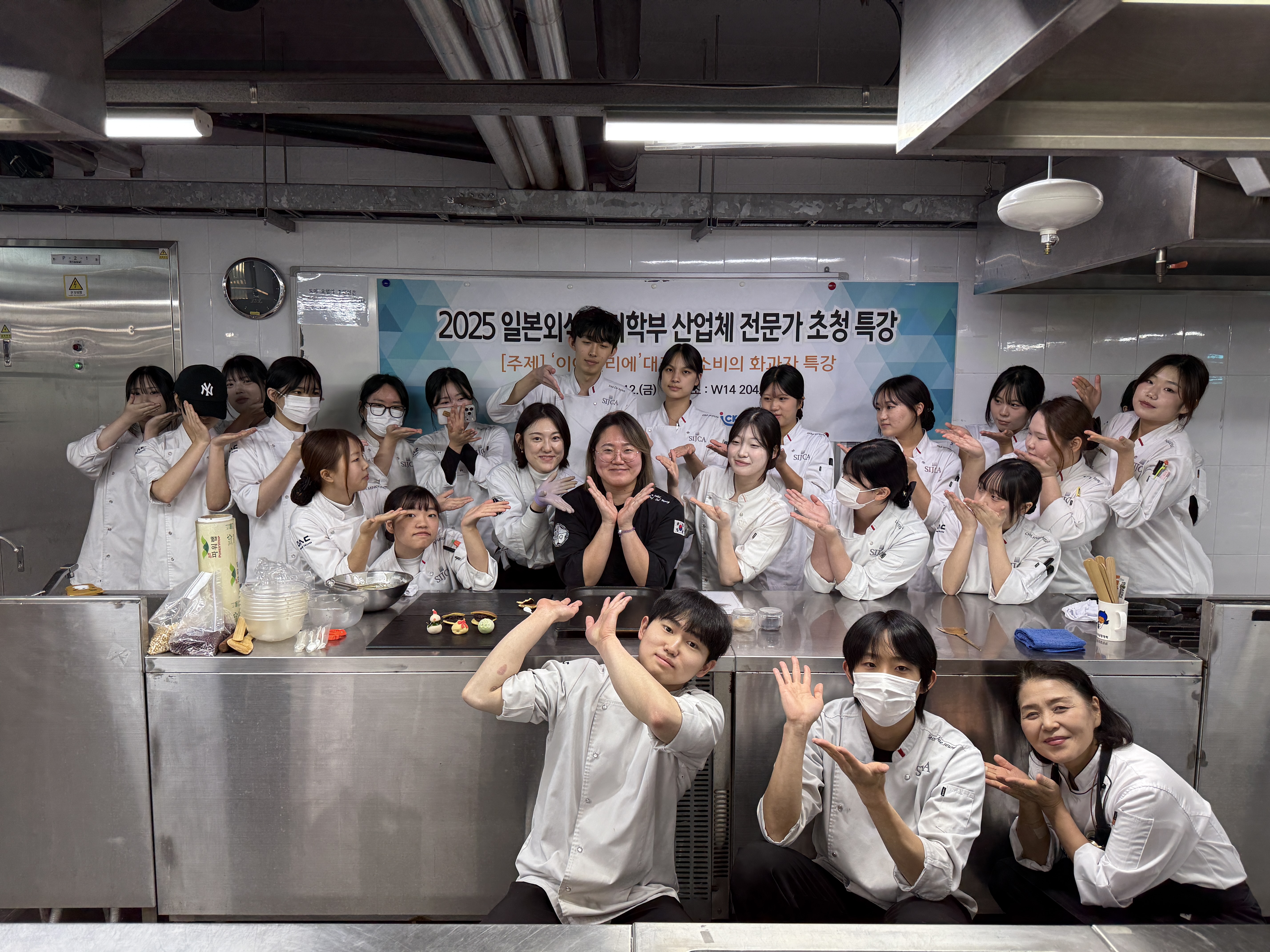 커뮤니티 공지사항 포토갤러리 동영상갤러리 Home커뮤니티포토갤러리 포토갤러리 화과자 특강 (강소비 이 아뜰리에) 2025 제 2회 카테고리 : | 작성자 : 학과관리자 | 작성일 : 2025.12.15 | 조회수 : 70 지난 25년12월12일(금)에 일본외식조리학부 전 학생을 대상으로 네리키리(練り切り) 화과자 특강을 진행하였습니다. 이번년도 또한 의정부 "강소비의 이 아뜰리에" 의 강소비 강사님께서 강의를 진행해주셨습니다. 이번 기회를 통해 처음 화과자를 접해보는 학생들도 있었으나 강사님의 세셈한 지도 덕분에 완성도 높은 작품을 만들 수 있었습니다. ∎ 현장 사진 ∎ 단체 사진 첨부파일 KakaoTalk_20251215_102443708_03.jpg KakaoTalk_20251215_102443708_02.jpg KakaoTalk_20251215_102443708.jpg KakaoTalk_20251215_102743366.jpg KakaoTalk_20251215_102443708_01.jpg KakaoTalk_20251215_093953373_17.jpg KakaoTalk_20251215_103147282.jpg 목록 이전글 이전 글이 없습니다. 다음글 메밀 소바 공방 대회 2025 제1회